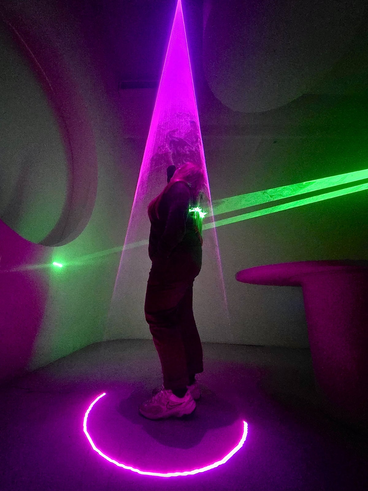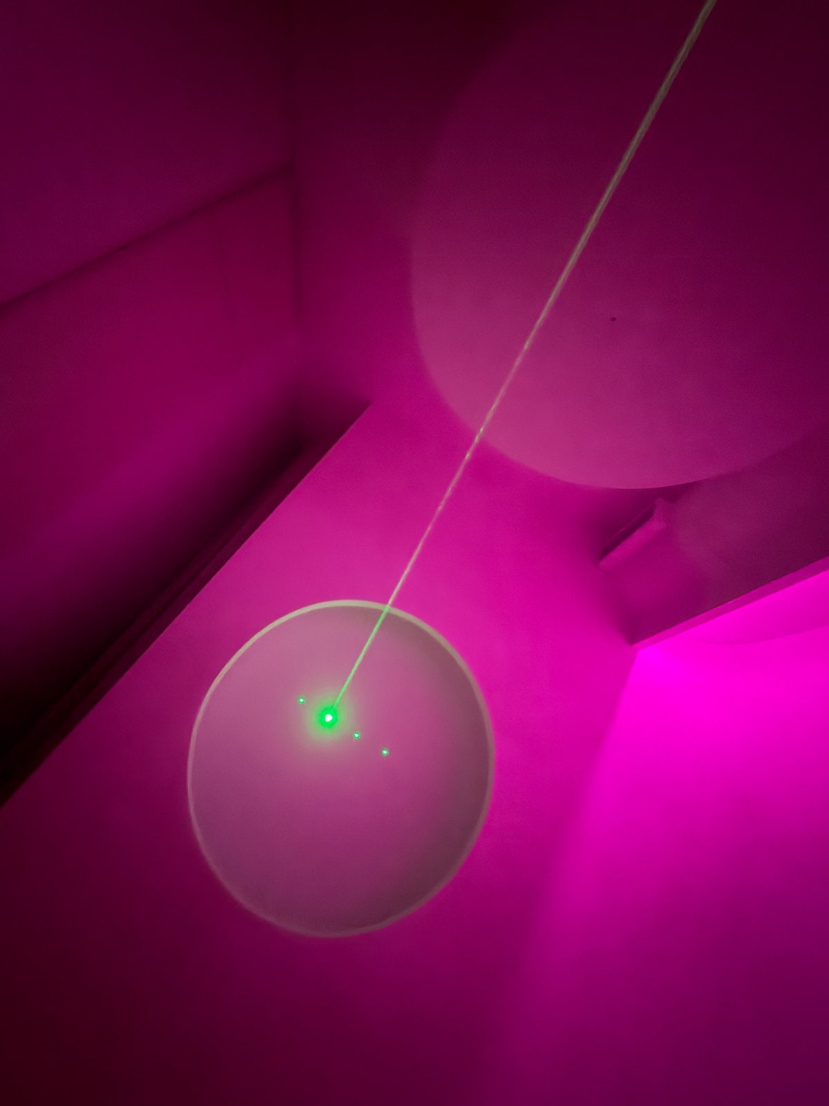 En esta primera etapa, la luz ordena el espacio y nos permite entender lo que nos rodea y a nosotros mismos en el lugar. Un láser nos escanea y se genera una identidad consciente a través de la sombra definida de nuestro propio contorno dibujada en el espacio.