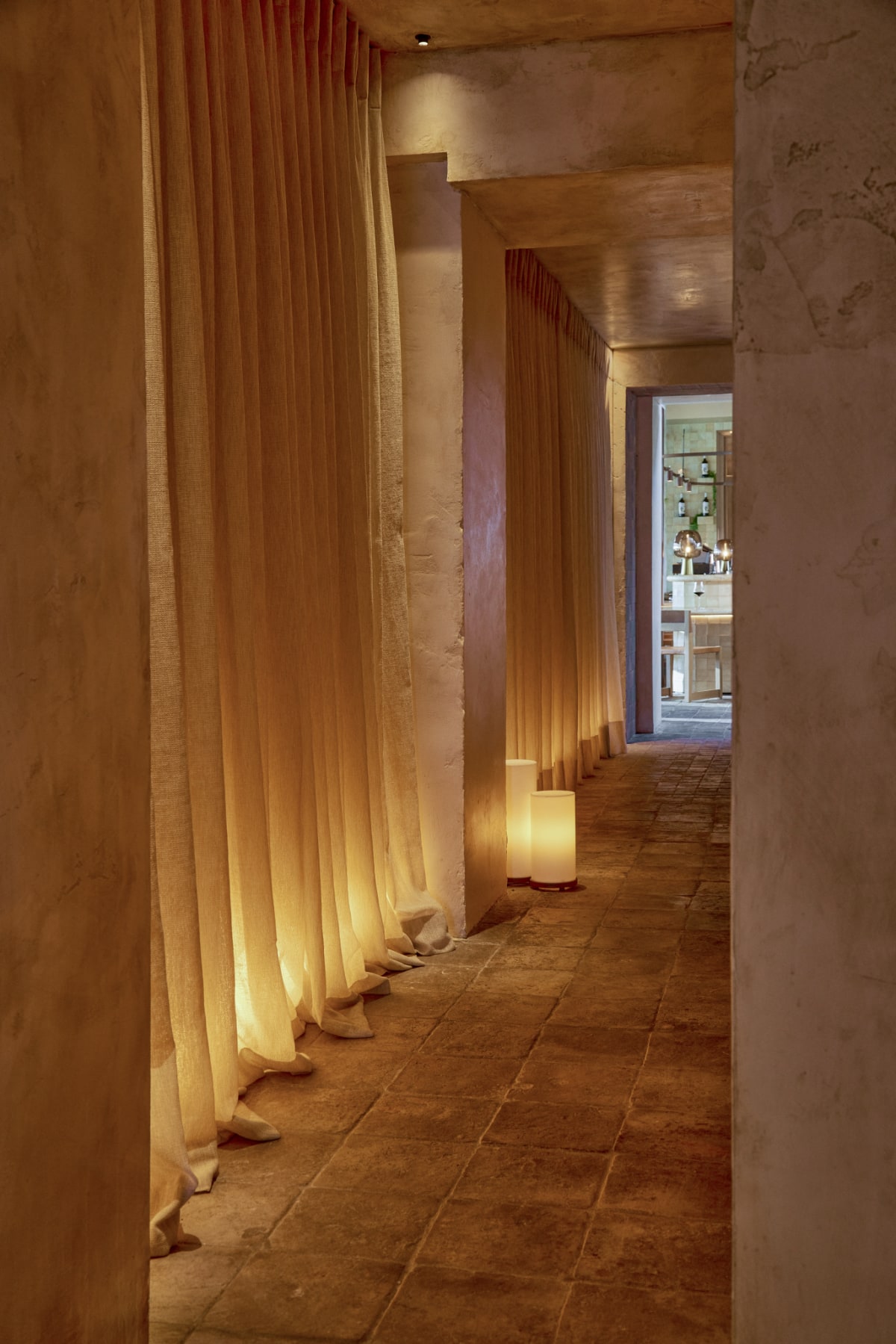 Escondida entre las cortinas, integrada en el mobiliario o fundida con la arquitectura, la luz genera recorridos con la humildad propia de los grandes protagonistas. Inspirándonos en la naturaleza dinámica del fuego, hemos diseñado sistemas de carriles integrados en el suelo con luminarias de emisión 360°, dispuestas con un ritmo orgánico. Al ubicarse en el plano inferior, la luz rasante resalta tanto las texturas del pavimento como la sutil trama de las paredes y textiles.