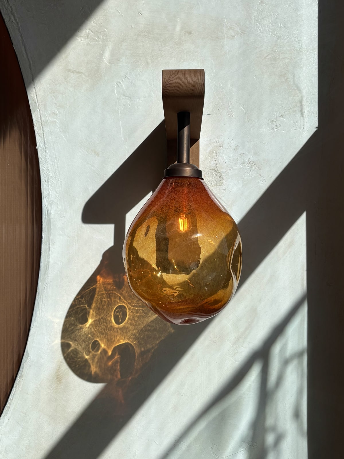 Un lugar tan singular merecía piezas diseñadas a medida. Las luminarias decorativas han sido desarrolladas junto a artesanos locales, aportando su saber hacer ancestral a la propuesta tecnológica. Vidrios soplados en tonalidades anaranjadas dialogan con la luz natural y crean ambientes de acogida al caer el sol. Cerámica, metal, vidrio y madera se funden en piezas únicas que completan la estética y el alma de Makáá.