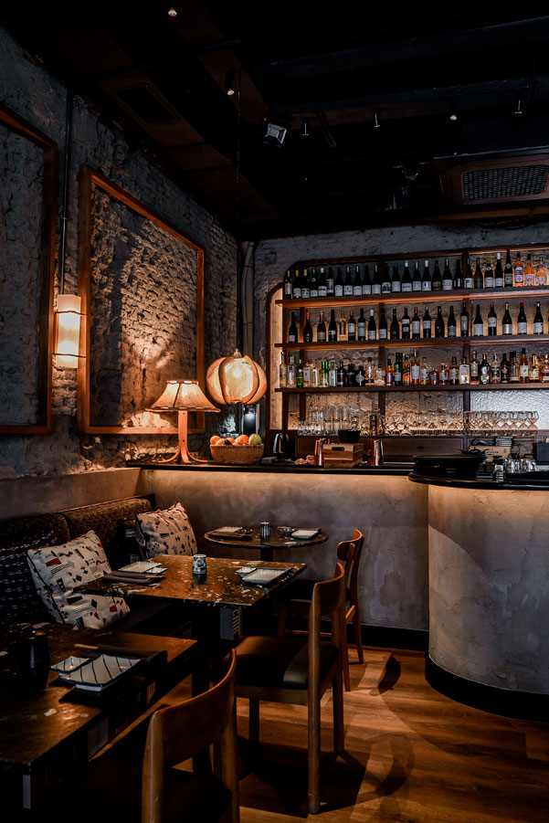En el callejón de Puigcerda perpendicular a la emblemática calle de Jorge Juan se encuentra el restaurante cosmopolita de comida japonesa Robata. El restaurante esta distribuido a lo largo de tres plantas, cada uno con su esencia y alma propia pero en todos se respeta una iluminación intimista creando una atmósfera acogedora y mística donde la oscuridad invade ciertos rincones haciendo protagonista a la luz cuando aparece iluminando materiales y detalles del proyecto, creando un mágico juego entre luces y sombras, creando un guiño a la parrilla japonesa.